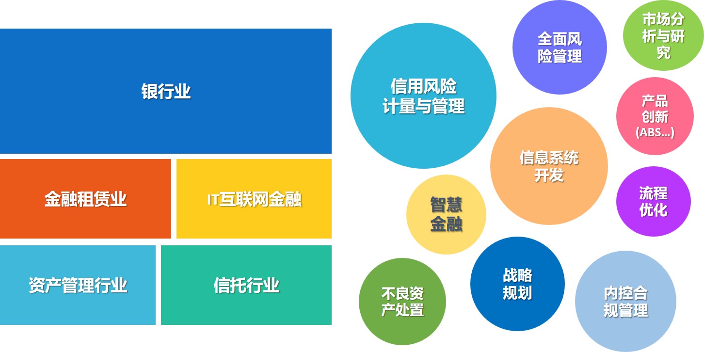 服务内容:全面风险管理,信用风险计量与管理,内控合规管理,市场分析与研究,信息系统开发,智慧金融 ,